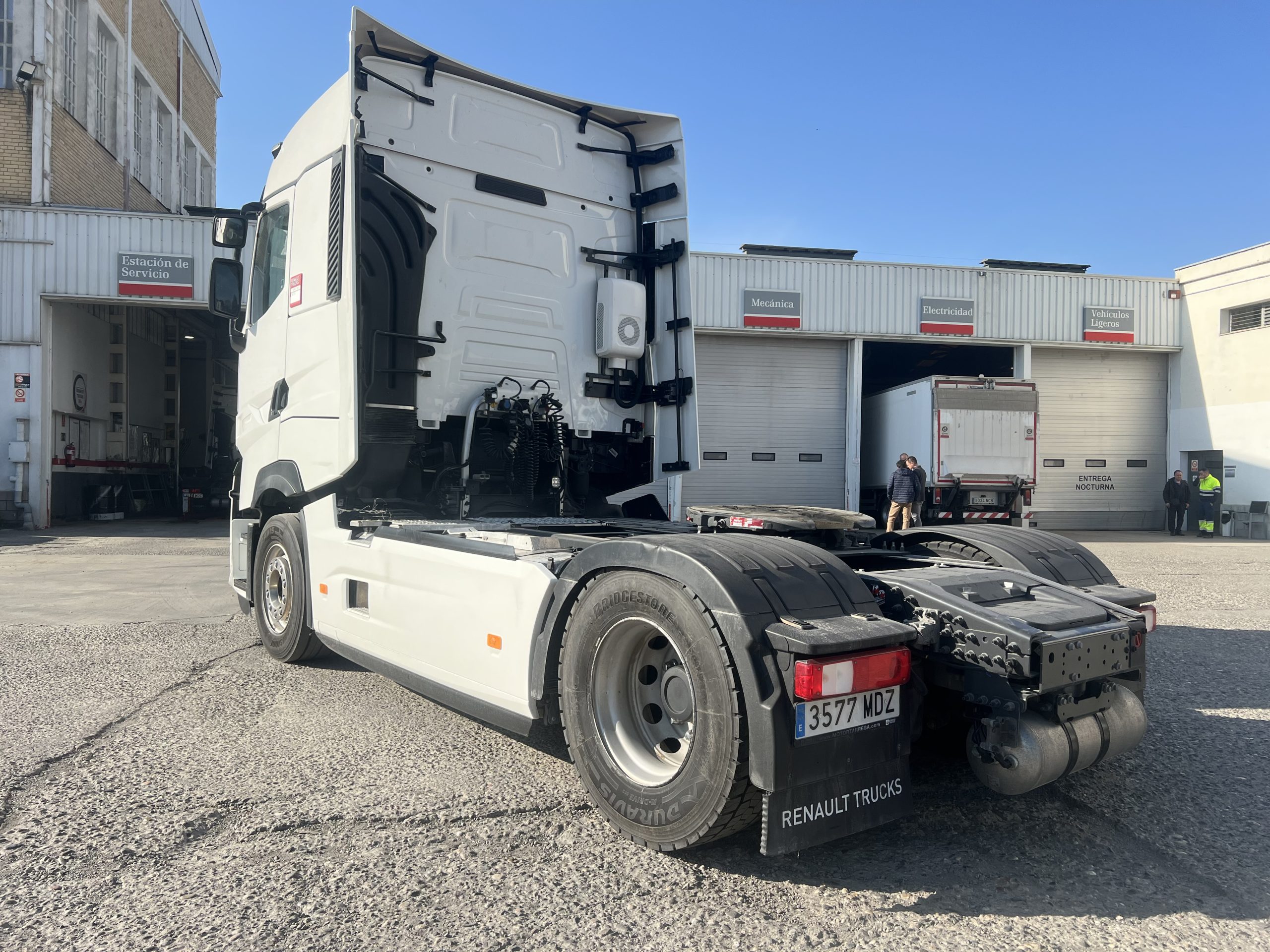 Tractora equipada con ruedas delanteras 385/55/22,5 y traseras 315/70/22,5, marca Bridgestone nuevas. Nevera, doble litera, enfriador de cabina en parado, retarder y carenados completos. Revisión de 200 puntos, todos los matenimiento realizados, tacógrafo e itv al día. Un año de garantía Renault Trucks.